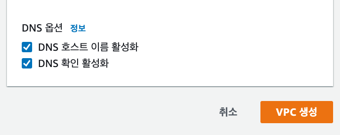 - 확인이 완료되었다면 "VPC 생성" 을 클릭하여 VPC를 생성한다.