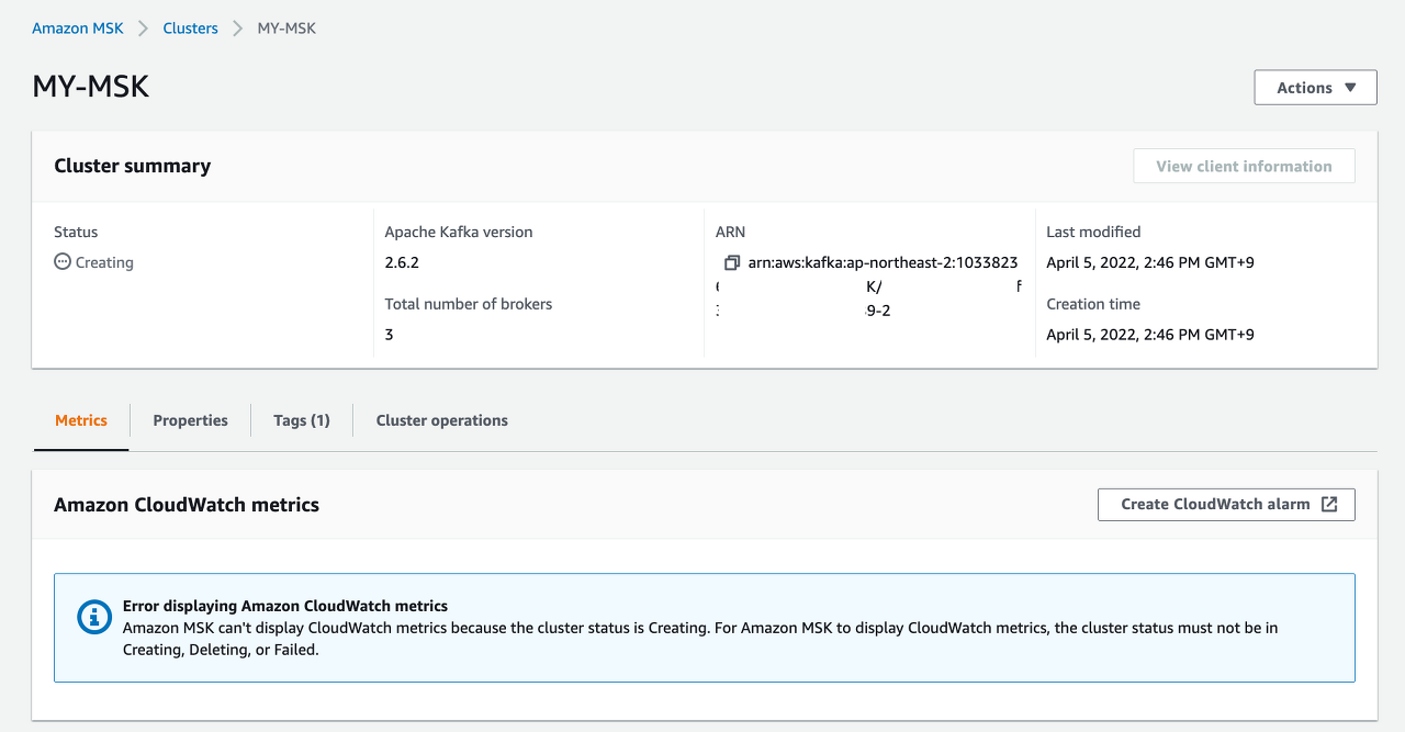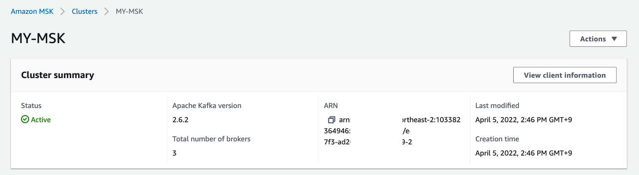 - 위 그림과 같이 msk의 경우 AWS에서 Kafka 클러스터를 실행할 수 있도록 한다.