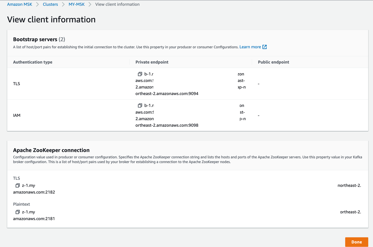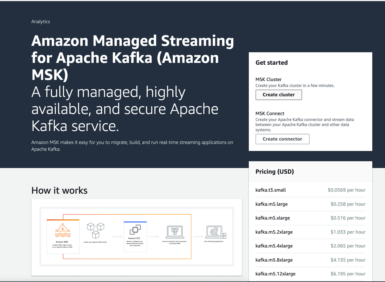 - Cluster가 구성되면, EC2, AWS Lambda, Amazon Kinesis Data Analytics 등과 연결하여 메시징 처리를 수행할 수 있다.