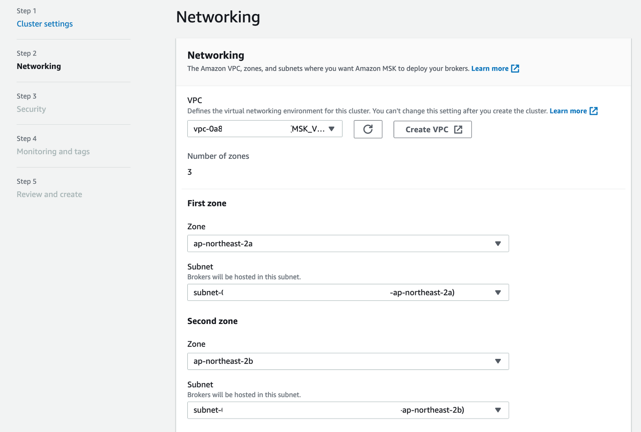 - 우리가 필요한 가용영역은 3개로 잡았다. MSK는 3개의 가용영역을 추천하고 있다.