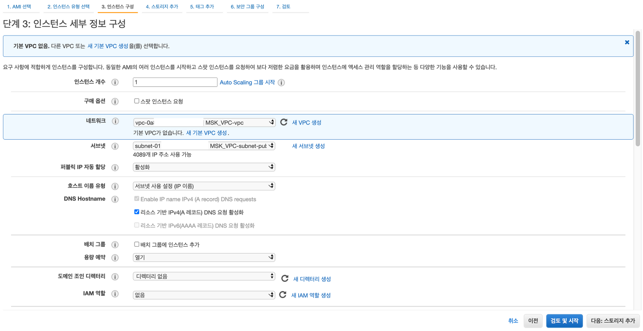 - 네트워크는 MSK의 VPC와 동일하게 설정해준다.