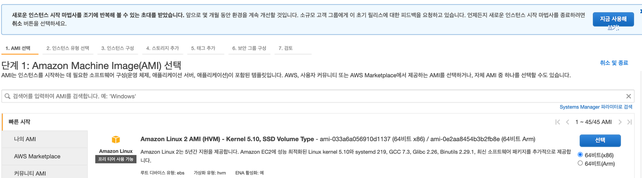 - 인스턴스는 Amazon Linux 2 AMI 를 선택한다.