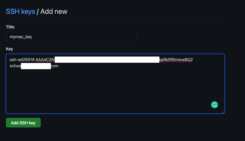 - New SSH Key 버튼을 클릭하여 다음과 같이 복사한 키를 등록하자.