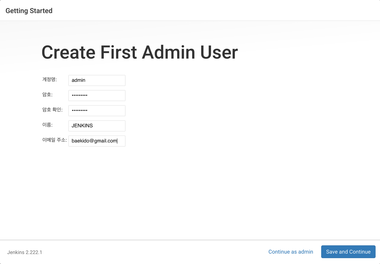 여기에 암호를 입력해 주고 continue 버튼을 클릭합니다.