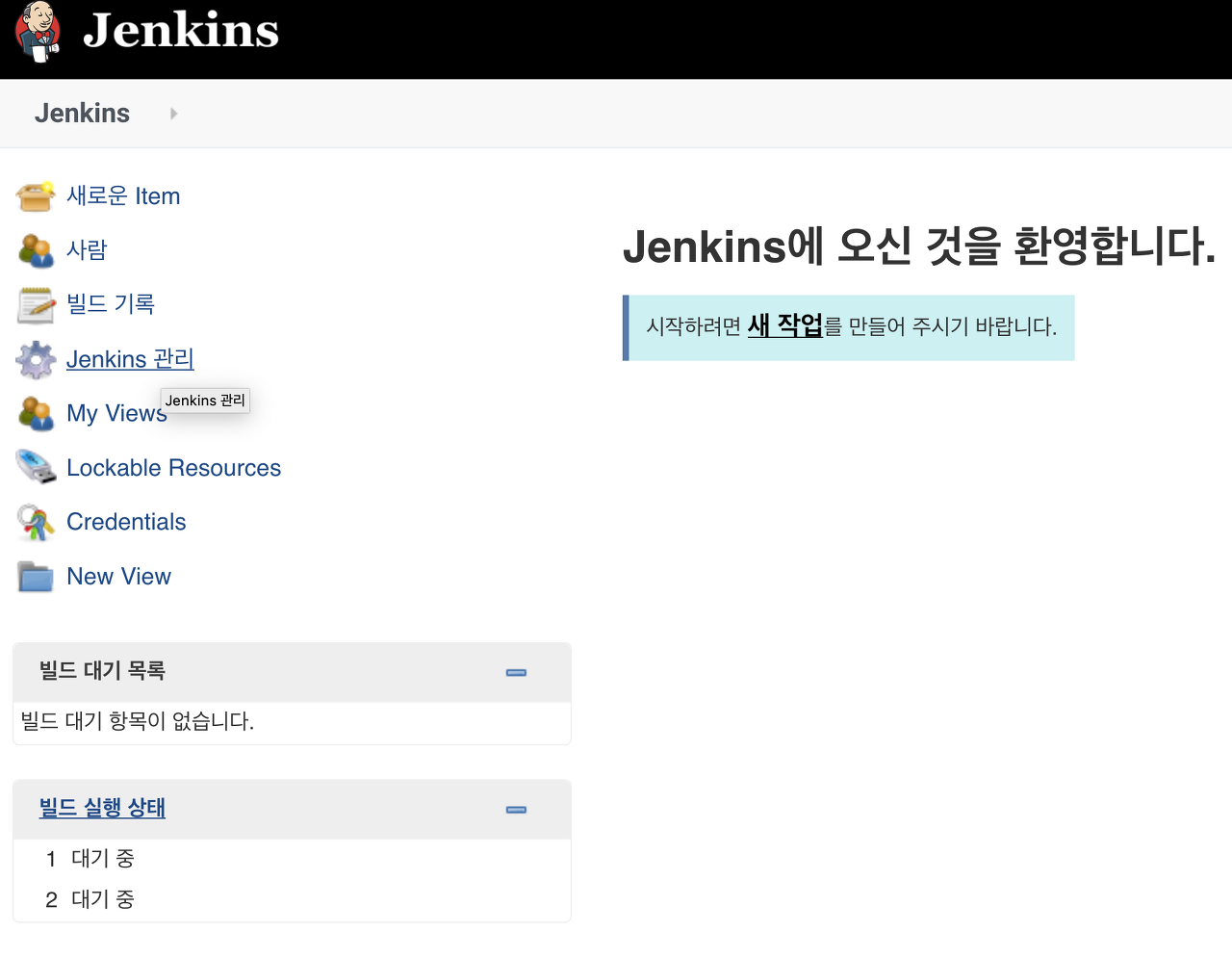 에서 Jenkins 관리를 선택합니다.