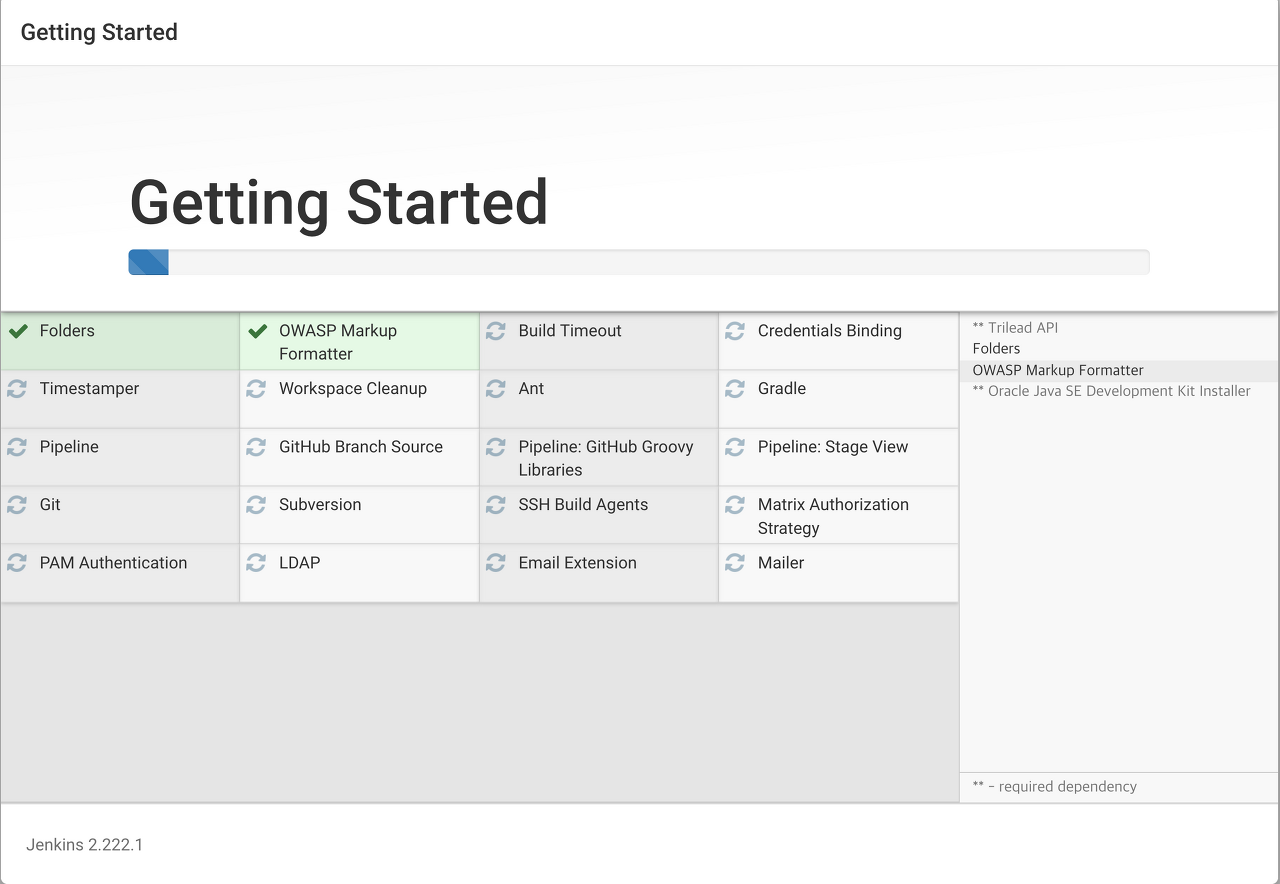 master | Jenkins initial setup is required. An admin user has been created and a password generated.
