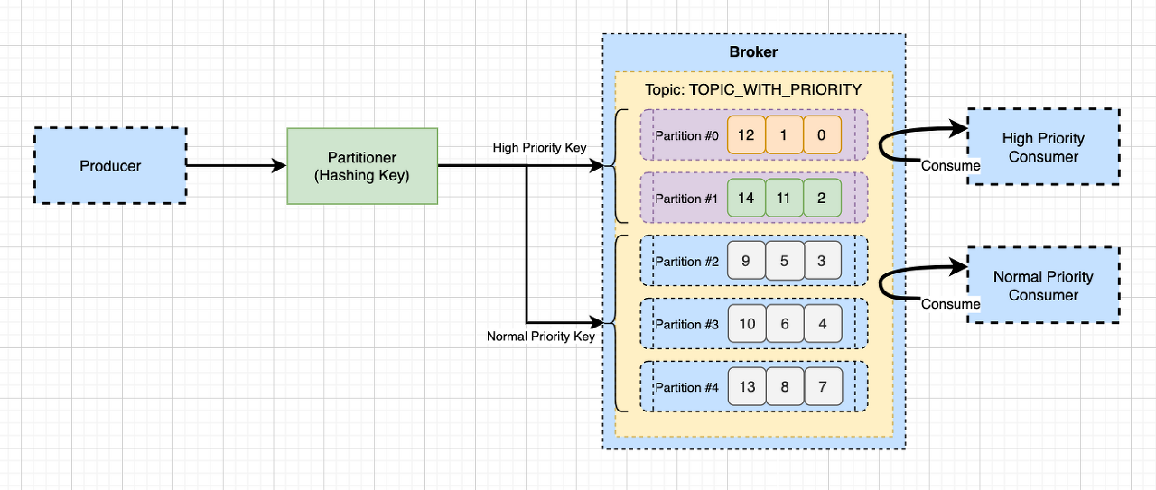 - 키에 따라 파티션에 메시지를 할당한다. 여기서 우선순위 파티션, 일반 순위 파티션으로 나눠지게 될 것이다.