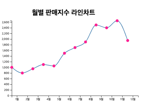 - 표시할 데이터: 라인차트를 그려주기 위해서는 데이터가 준비 되어야겠지요? 데이터는 월별 판매지수 그대로 이용하겠습니다 .